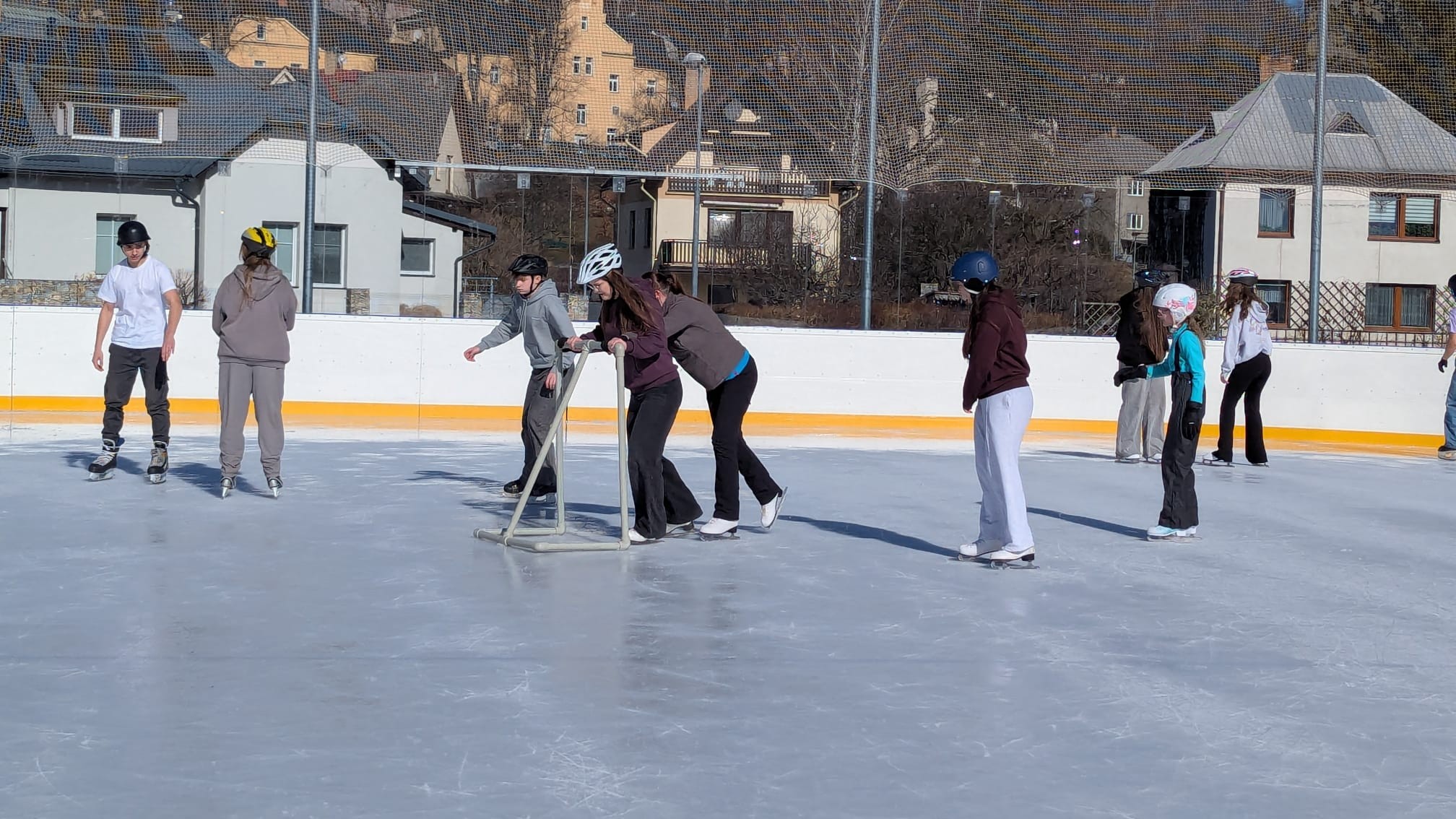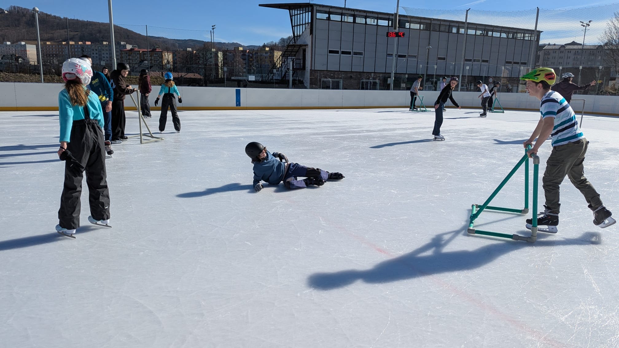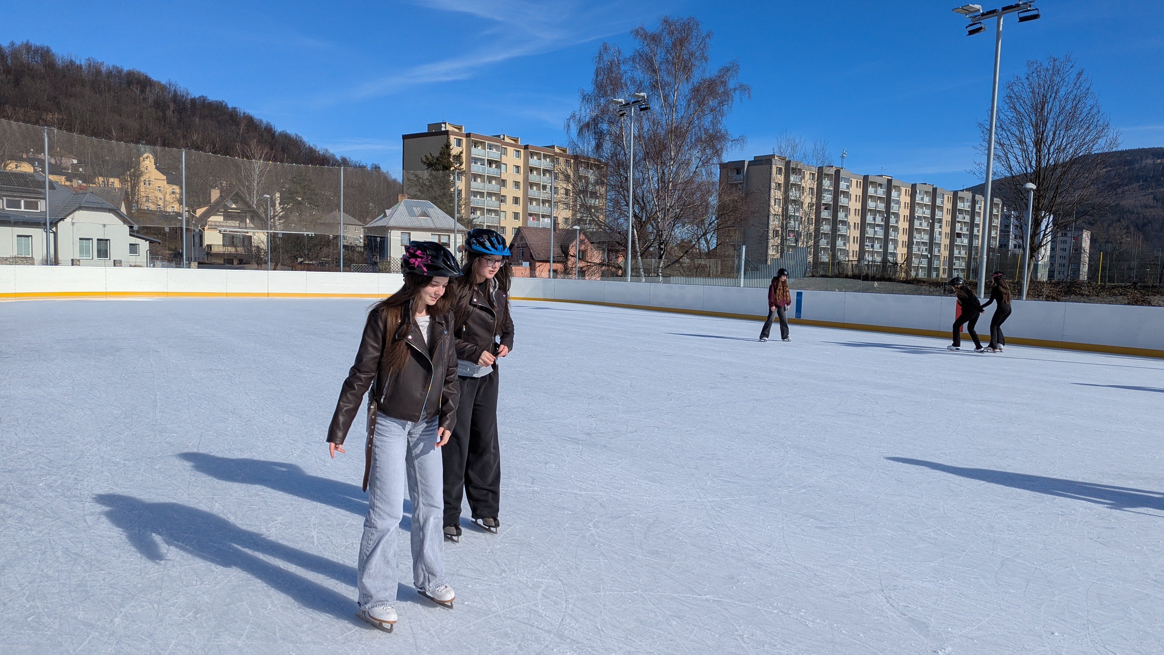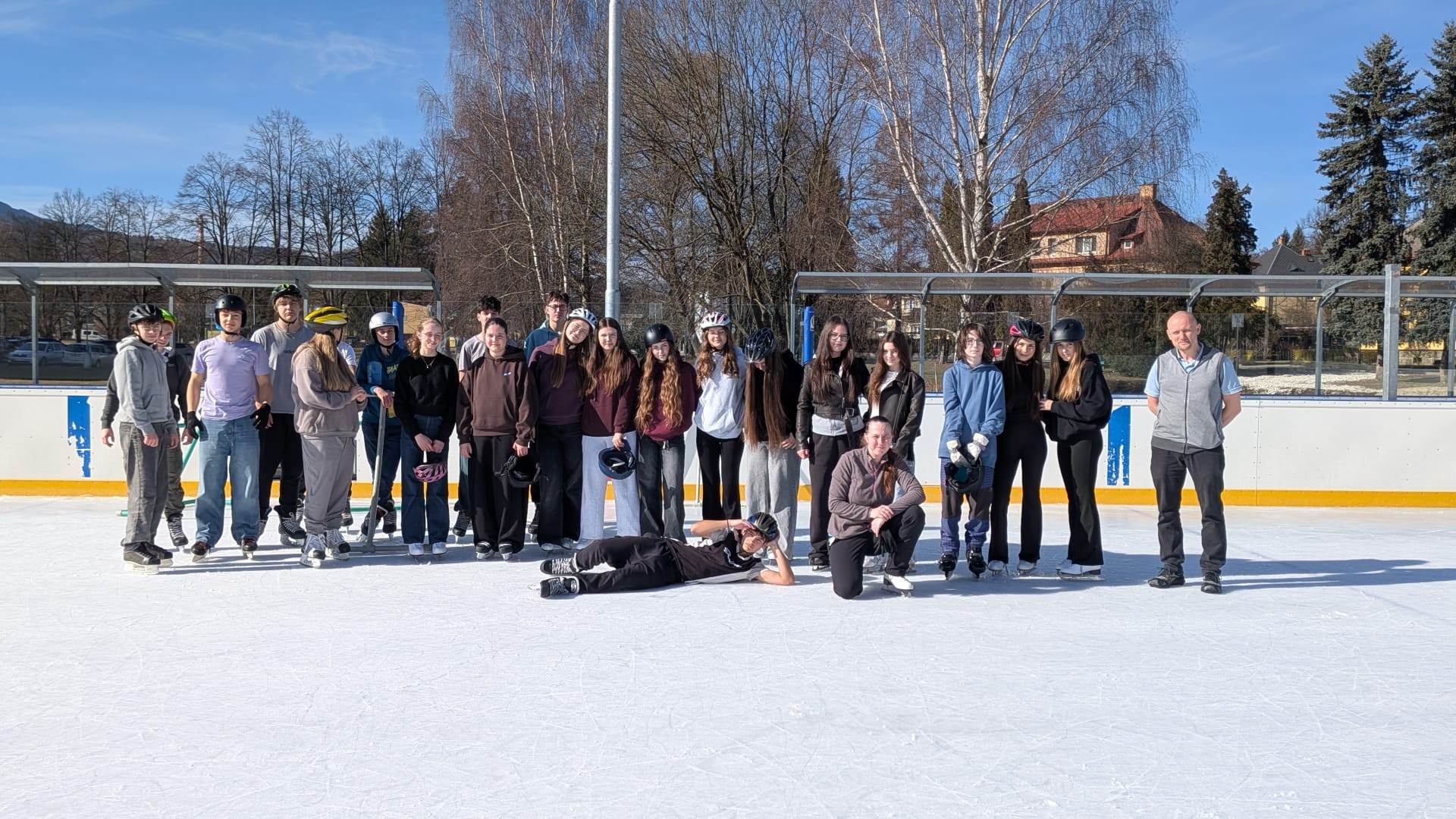 Ve čtvrtek 26. února 2026 se žáci obou devátých tříd vydali na kluziště do Jeseníku. Počasí nám přálo - krásně svítilo slunce a nám nic nebránilo rozlétnout se ledové ploše. Někteří se předvedli jako zkušení bruslaři, jiní na bruslích stáli poprvé nebo podruhé v životě. Nejvíce nás bavili společné hry - na babu, zmrzlík... Užili jsme si spoustu legrace a jeden z posledních společných sportovních zážitků. Celý den byl takovým relaxem v době příprav na přijímací zkoušky.