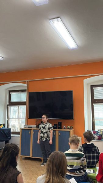 Malí recitátoři z 1. stupně se účastnili recitační přehlídky 24. 2. v zrcadlovém sále KD, postoupilo 5 žáků a to Klára Schreiberová, Jakub Navrátil, Amálie Jahodová za I. kategorii a za II. kategorii Kateřina Salvová a Adriana Hamplová. Tyto děti nás reprezentovaly v okresním kole recitace Dětské scény 10. března, statečně bojovaly, bohužel na postup do kraje to nestačilo. Všem děkuji za vzornou přípravu!