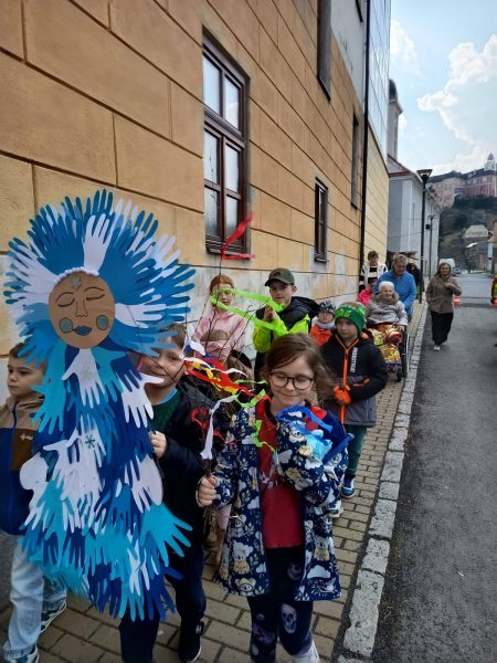 Nemohli jsme zapomenout na vynesení paní zimy „Moreny“. Jde o zvyk, který ukončuje zimu. Zároveň jsme zdobili větvičky břízy, které se říká líto nebo lítečko, ta symbolizuje příchod jara. Děti obkreslovaly a vystřihovaly své dlaně z barevného papíru, ze kterých naše Morena vznikla. Před prvním jarním dnem jsme se společně s babičkami a dědečky z Domova pro seniory v Javorníku vypravili Morenu vyhodit do potoka.. Morena odplavat nechtěla, děti jí pomohly zpěvem písničky o jaru. Doufáme, že odplavala hodně daleko a zima už se k nám nevrátí ani na chviličku.