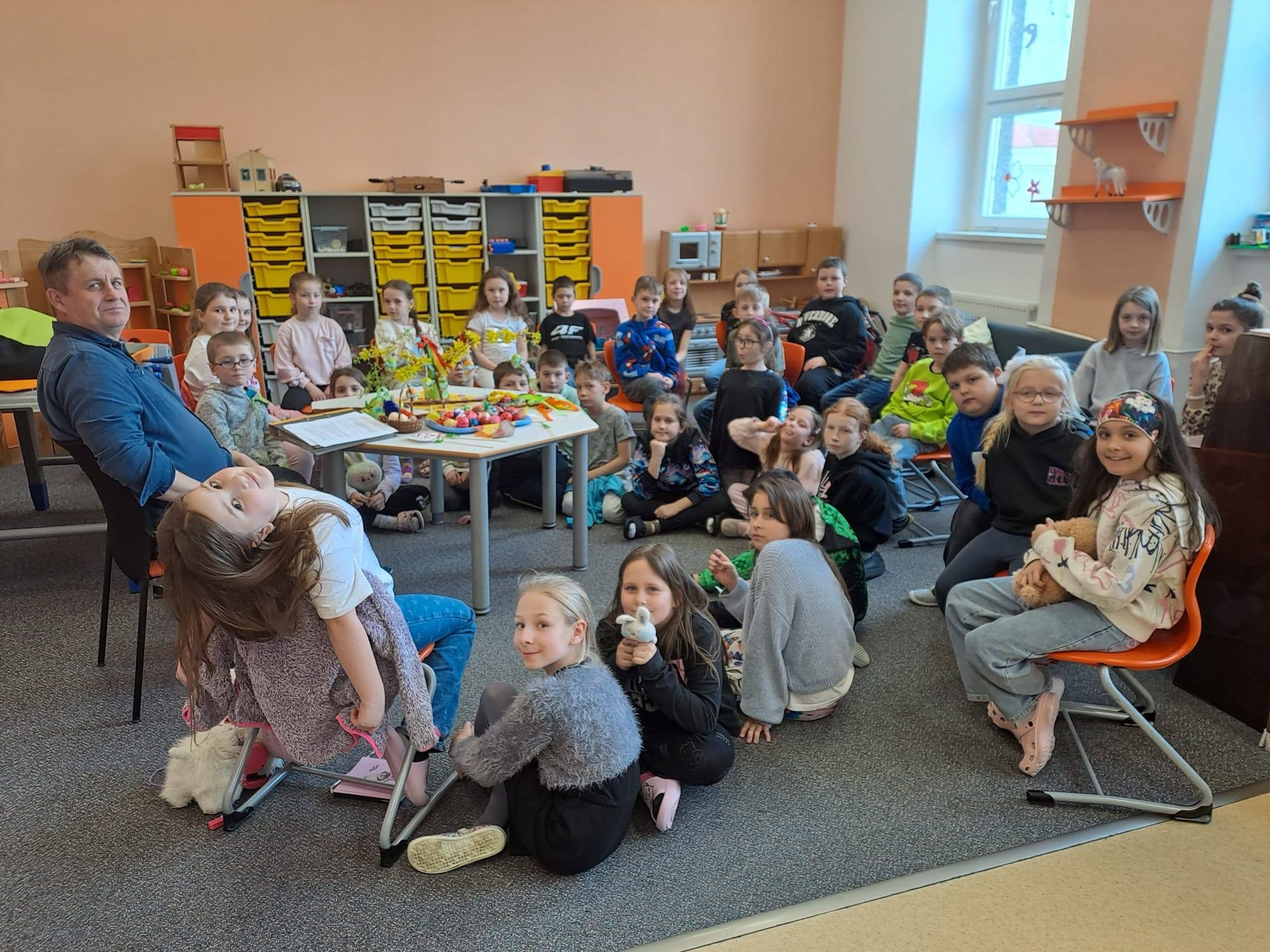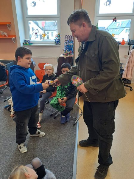 Veselé odpoledne plné velikonočních zvyků a tradic bylo s Mgr. Milanem Rychlým. Děti zaujalo nejen povídání, ale i staré pohlednice, které nám přinesl p. Rychlý ukázat.