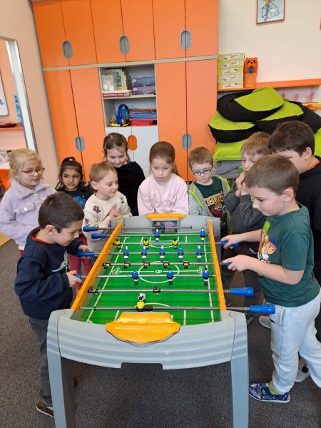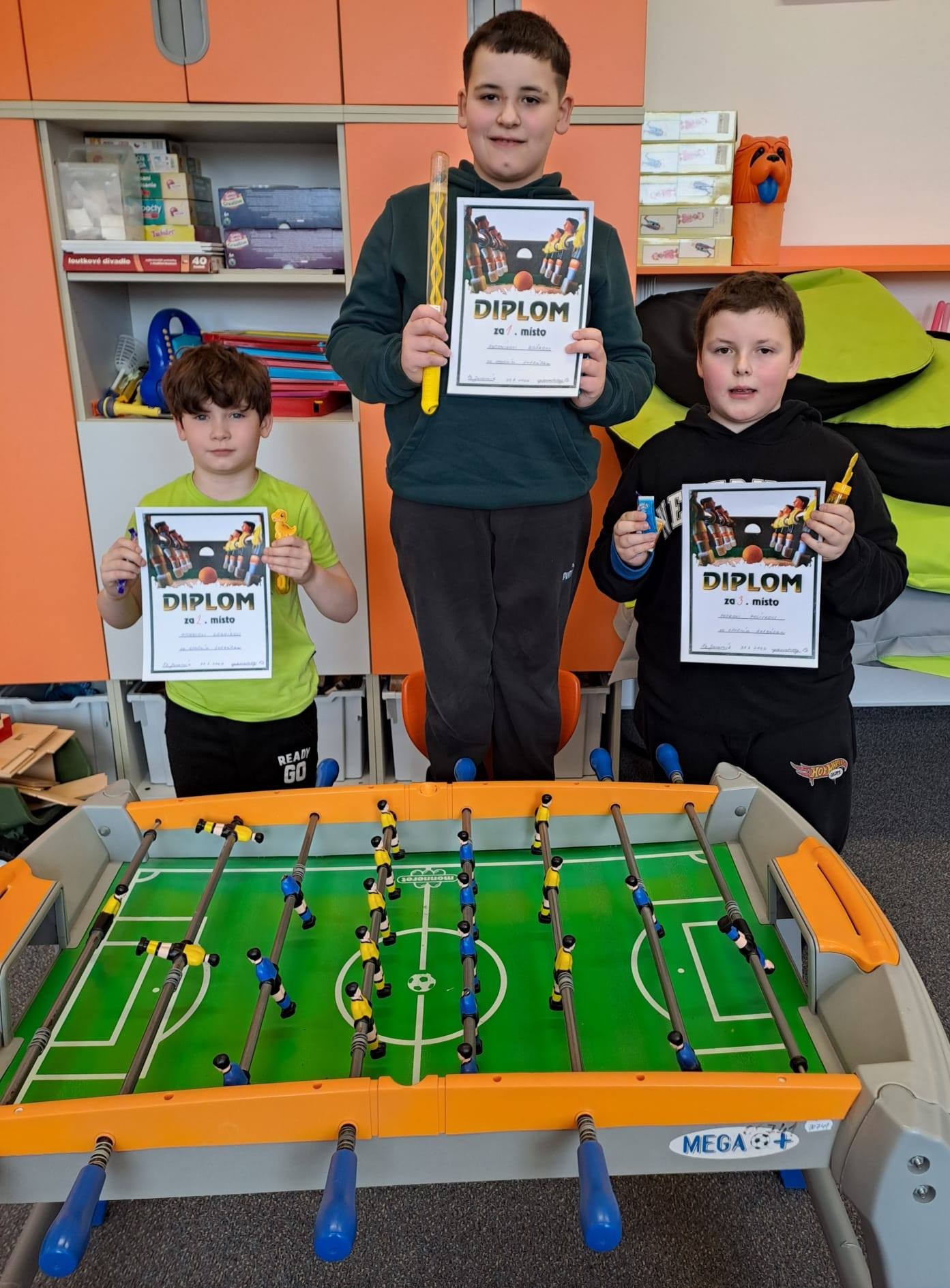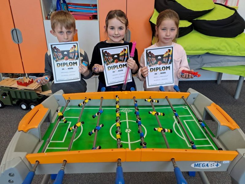 Poslední den v měsíci se soutěžilo ve stolním fotbálku. Děti hrály s velkým zápalem a nasazením, ale hlavně s radostí ze hry. Vítězové dostali drobný dárek a pěkný diplom. Malou odměnu v podobě sladkosti dostali všichni hráči.