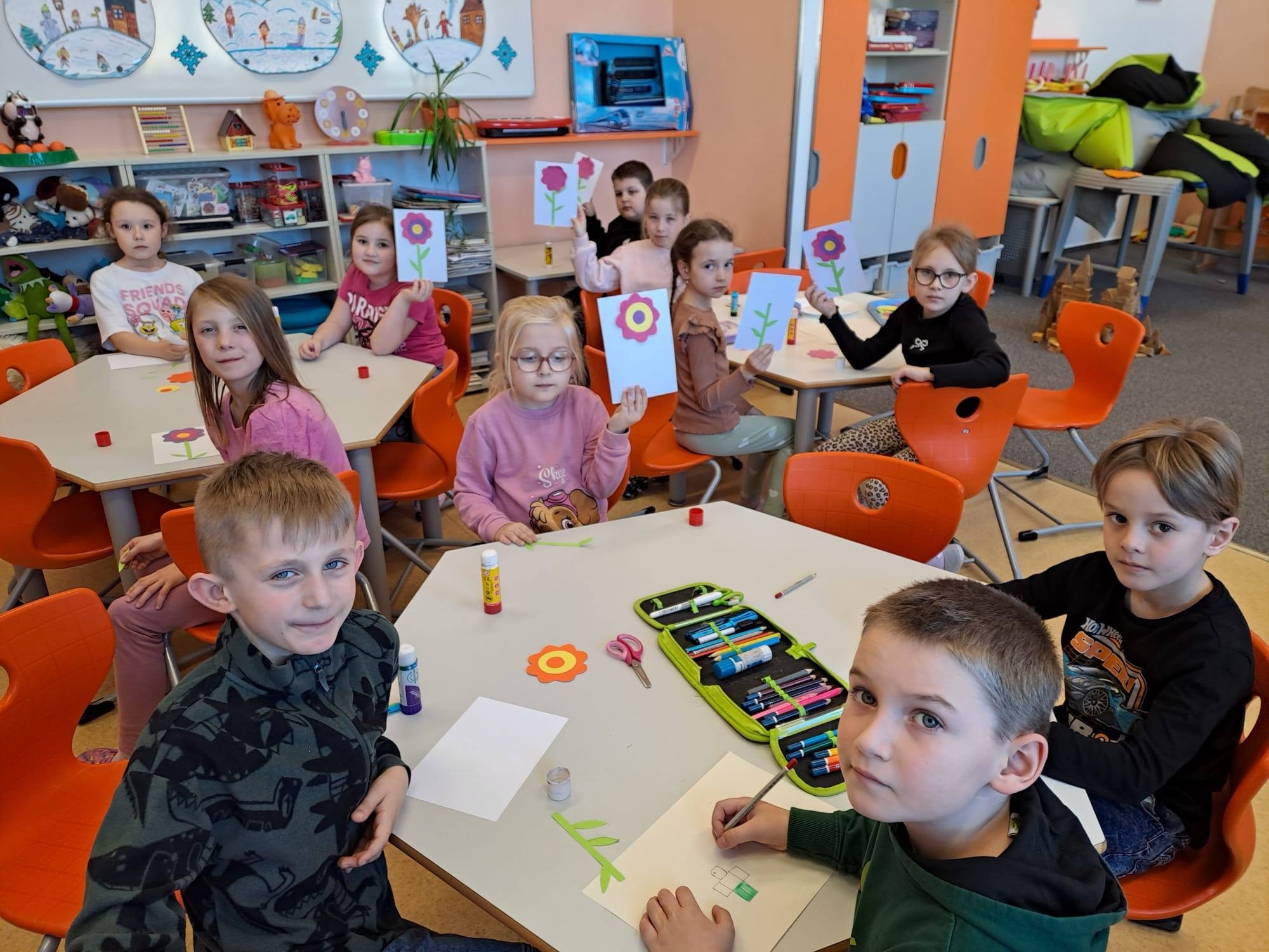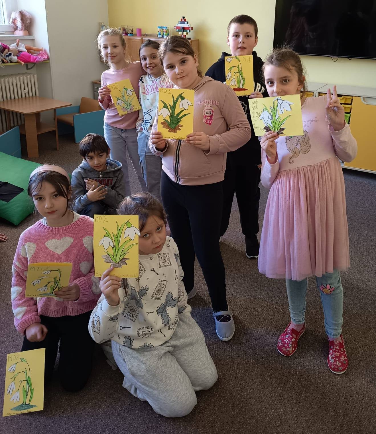 Plno kytiček se v družině vybarvovalo, lepilo a stříhalo před MDŽ. Krásná přáníčka byla určena maminkám, babičkám, sestrám nebo tetám. Věříme, že všem ženám udělalo přání radost. V průběhu celého měsíce děti ve výtvarných činnostech malovaly spoustu jarních kytek, vybarvovaly omalovánky s jarní tématikou a učily se krátké říkanky o jaru.