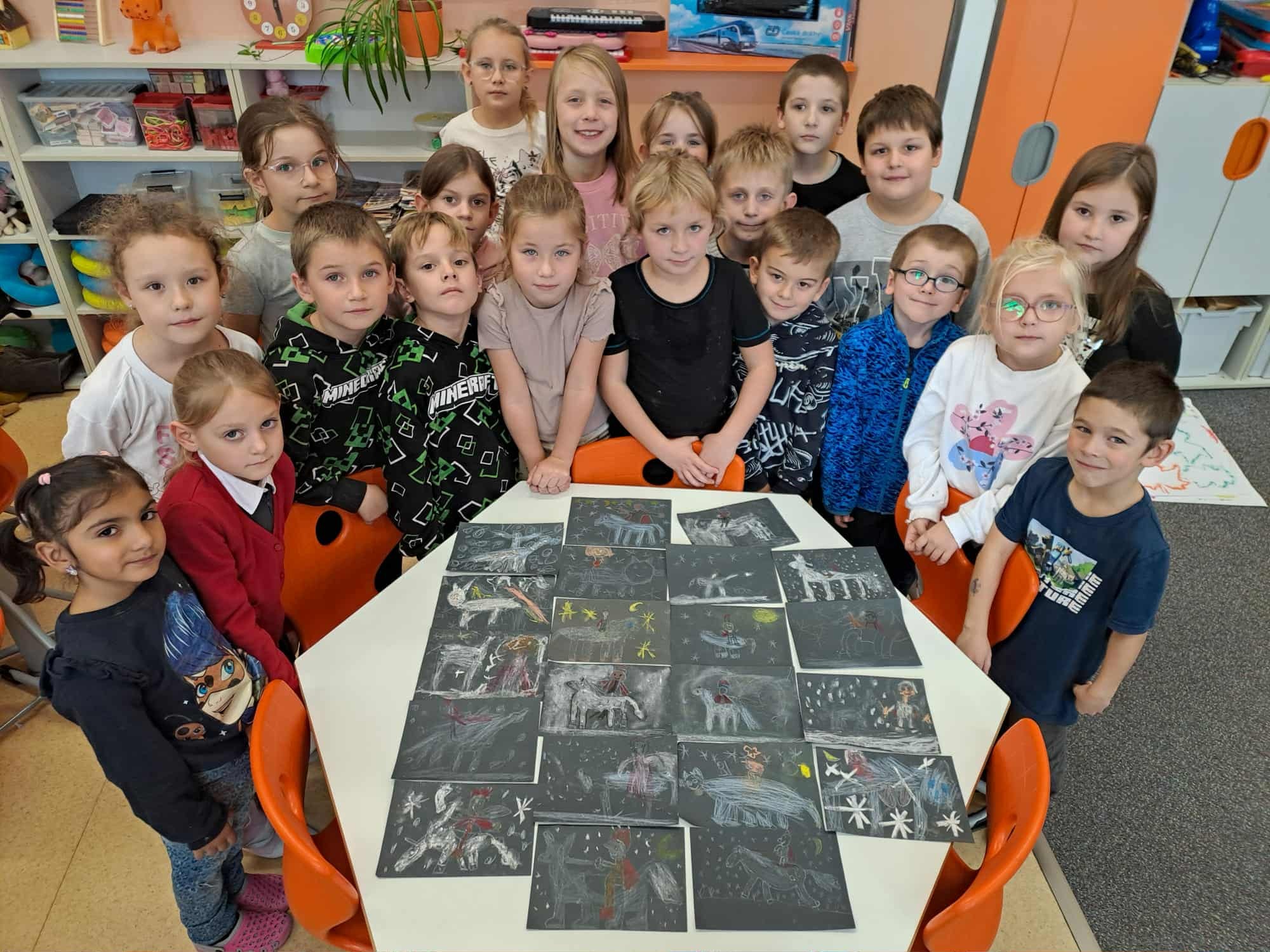 Ve školní družině jsme si také připomněli svátek sv. Martina tvořivými i zábavnými aktivitami. Děti malovaly podzimní obrázky inspirované Martinskou legendou a s nadšením vyráběly vlastní papírové lampiony, které rozzářily celé odpoledne. Společně jsme si také vyprávěli příběh o sv. Martinovi, který se podělil o svůj plášť s promrzlým žebrákem a povídali si o tom, jak můžeme být laskaví k lidem kolem nás. Atmosféra byla plná tvoření, radosti a očekávání, zda i k nám „přijede na bílém koni“.