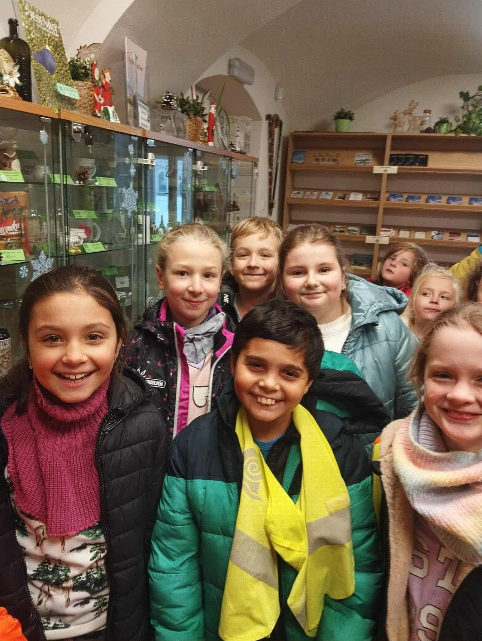 Pokračovali jsme spoluprací s Infocentrem v budově bývalého Soudu. Děti měly možnost nahlédnout do nabídky suvenýrů a různých dárkových předmětů. Pan Zajonc jim představil nové kalendáře na příští rok a v patře jsme si společně prohlédli vystavené exponáty.