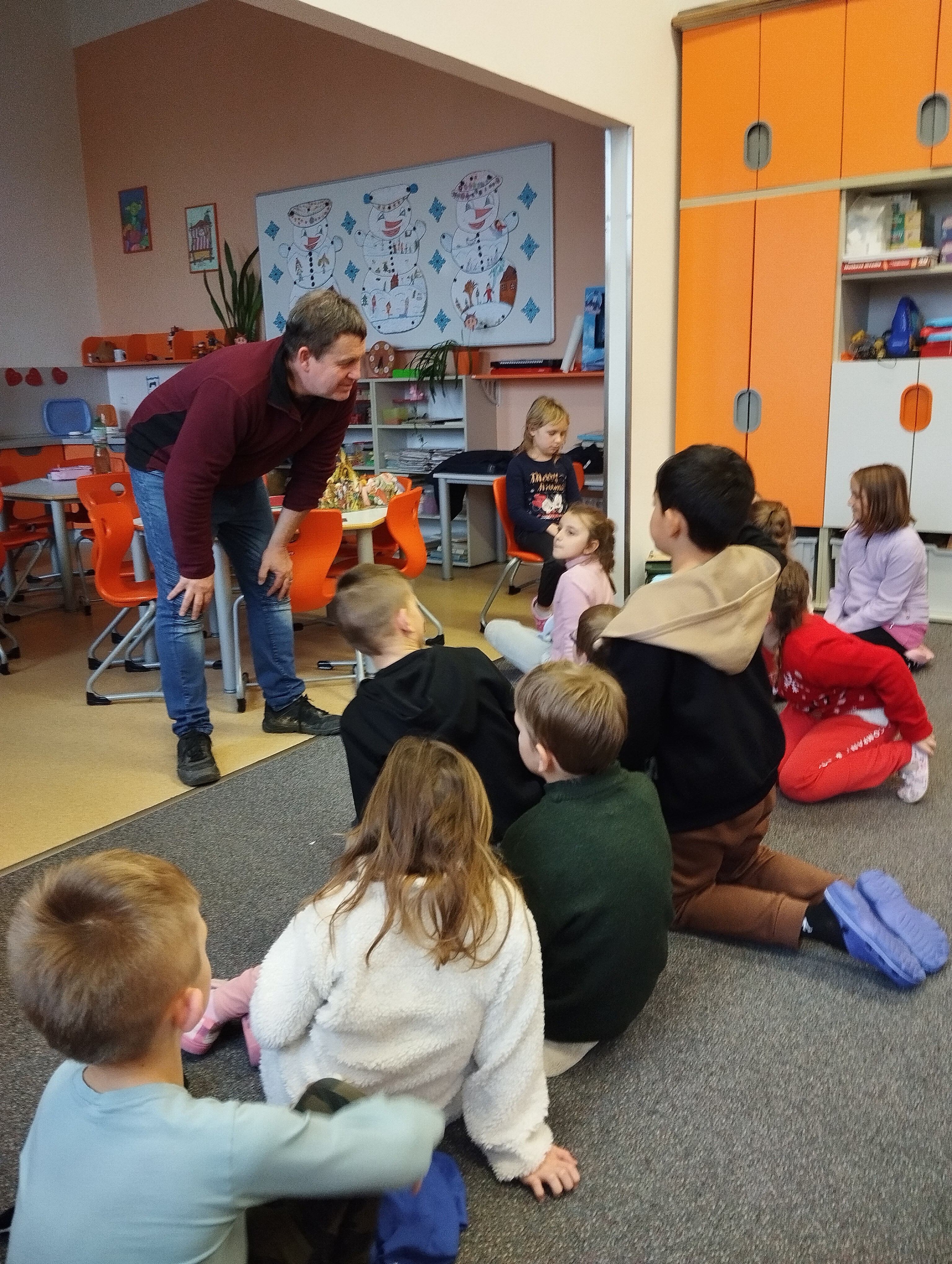 O vánočních zvycích a tradicích nám vykládal p. Mgr. Milan Rychlý. Děti se dozvěděly nové informace, například, že se v dřívějších dobách dával stromeček na strop špičkou směrem dolů. Dětem také ukázal dobové fotografie a vykládal, jak Vánoce slavili naši předci. Po besedě dětem trpělivě odpovídal na spoustu otázek a my děkujeme, že si vždy najde čas, aby za námi do družiny přišel.