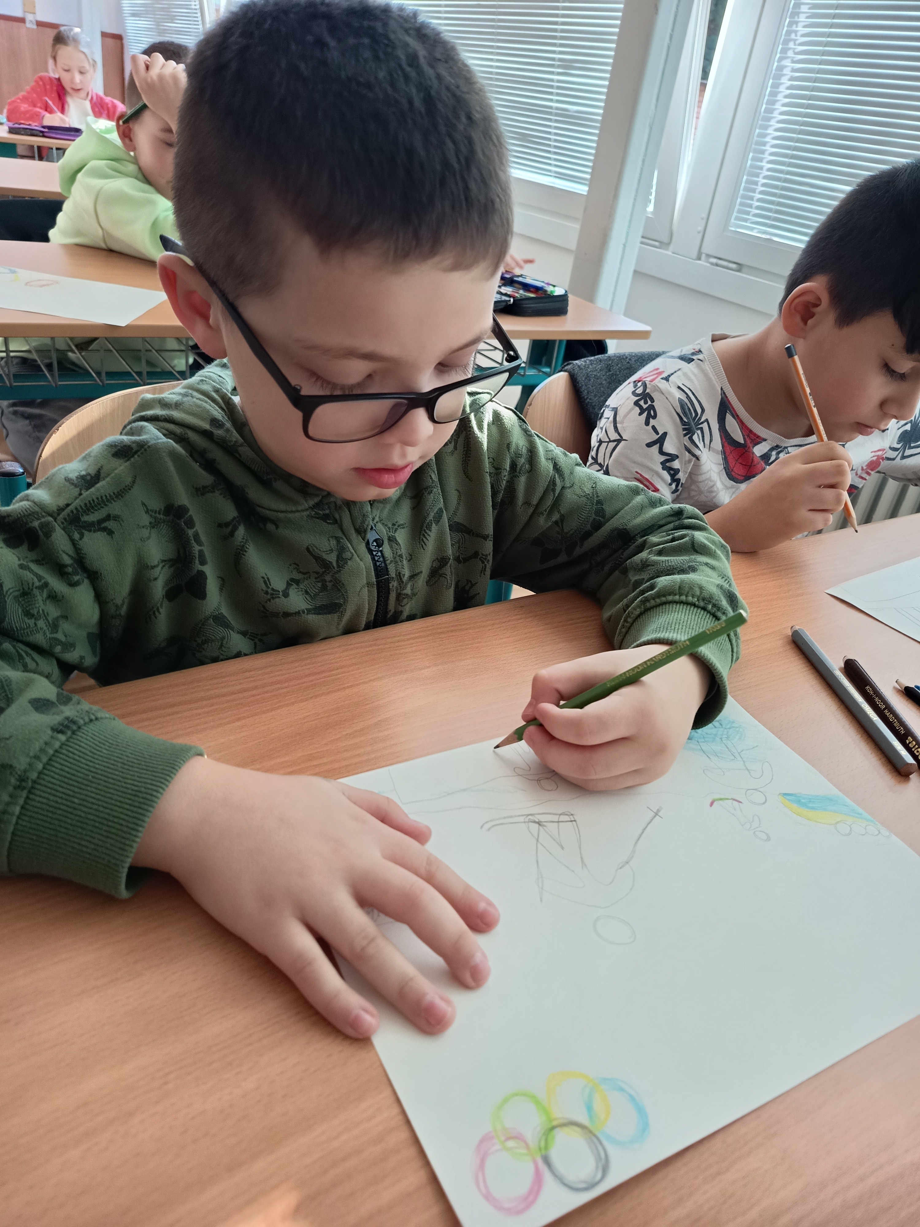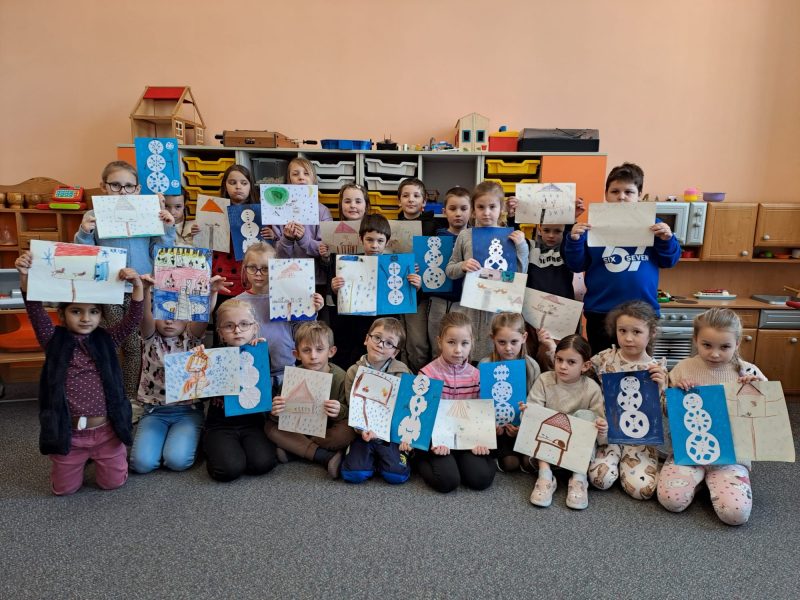 Zimní období jsme si připomněli také při tvoření se zimní tématikou. Děti malovaly zimní krajinu a věnovaly se i tématu zimních sportů v rámci našich „Olympijských her“. Vznikla krásná díla plná lyžařů, bruslařů i hokejistů.