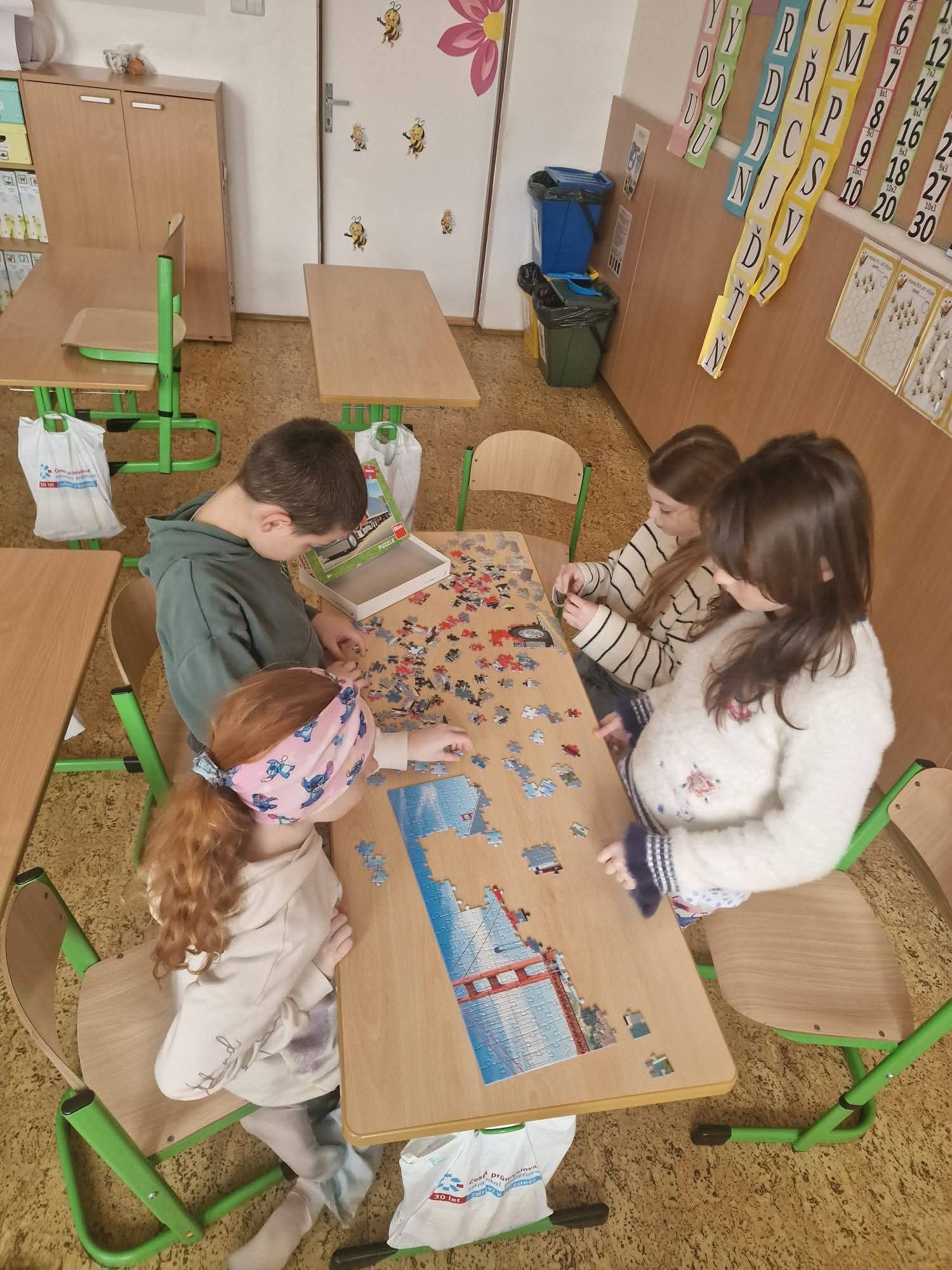 Nechyběl ani turnaj ve skládání puzzlí. Děti soutěžily v rychlosti i spolupráci a ukázaly, že umí táhnout za jeden provaz. Atmosféra byla napínavá, ale zároveň přátelská.
