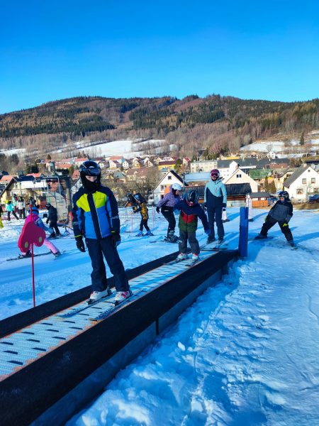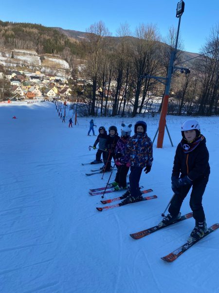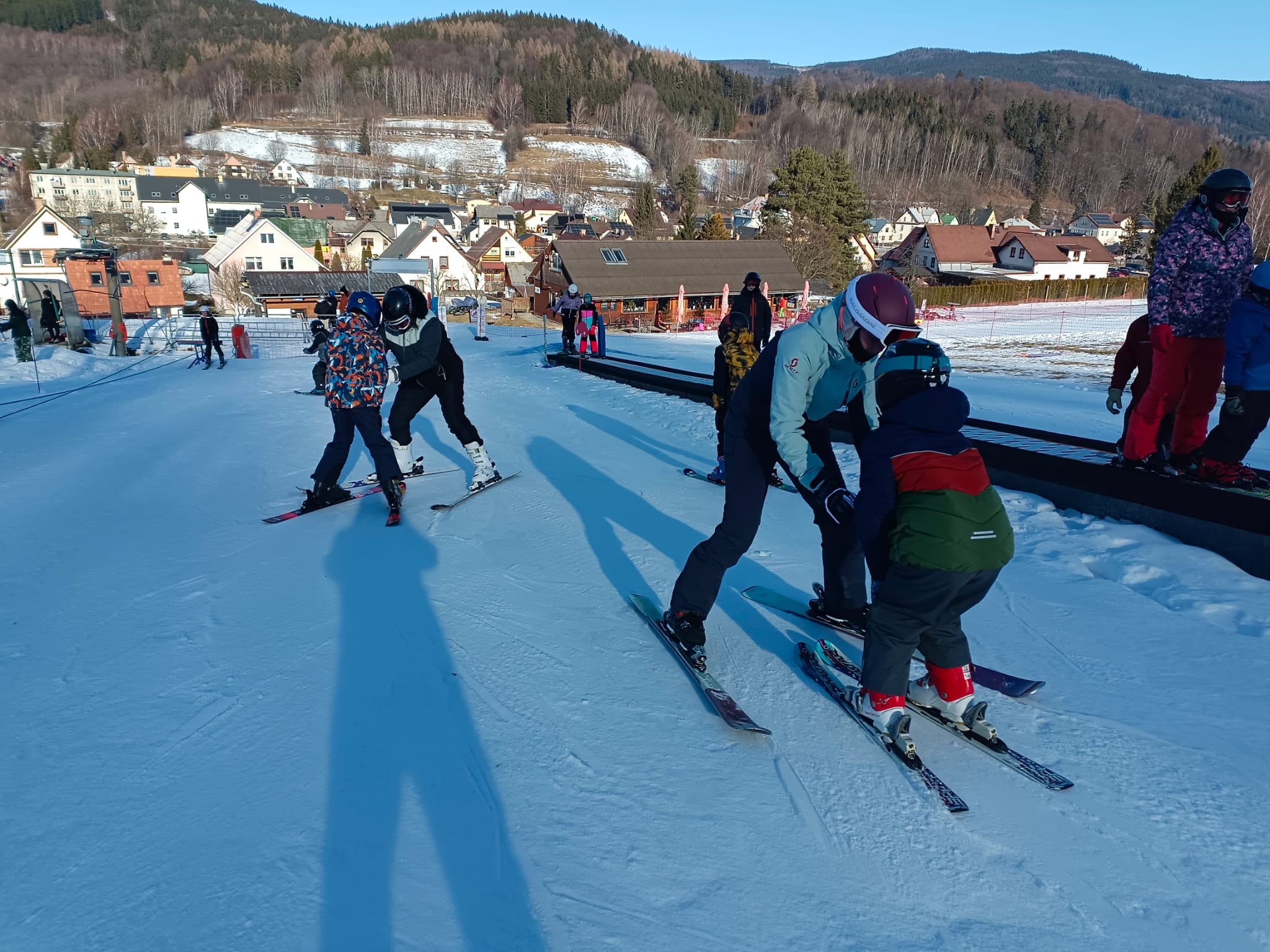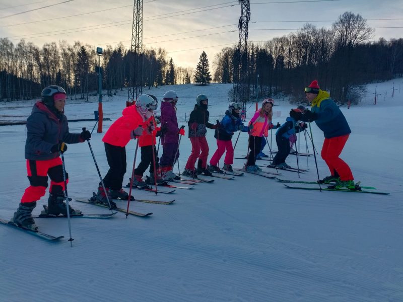 Lyžařský kurz pro žáky 3.–5. třídy proběhl v lednu na Lázeňském vrchu a zúčastnilo se ho celkem 40 dětí. Sešla se opravdu pestrá skupina – od úplných začátečníků, kteří stáli na lyžích poprvé, až po zkušenější lyžaře, kteří už pilovali techniku.