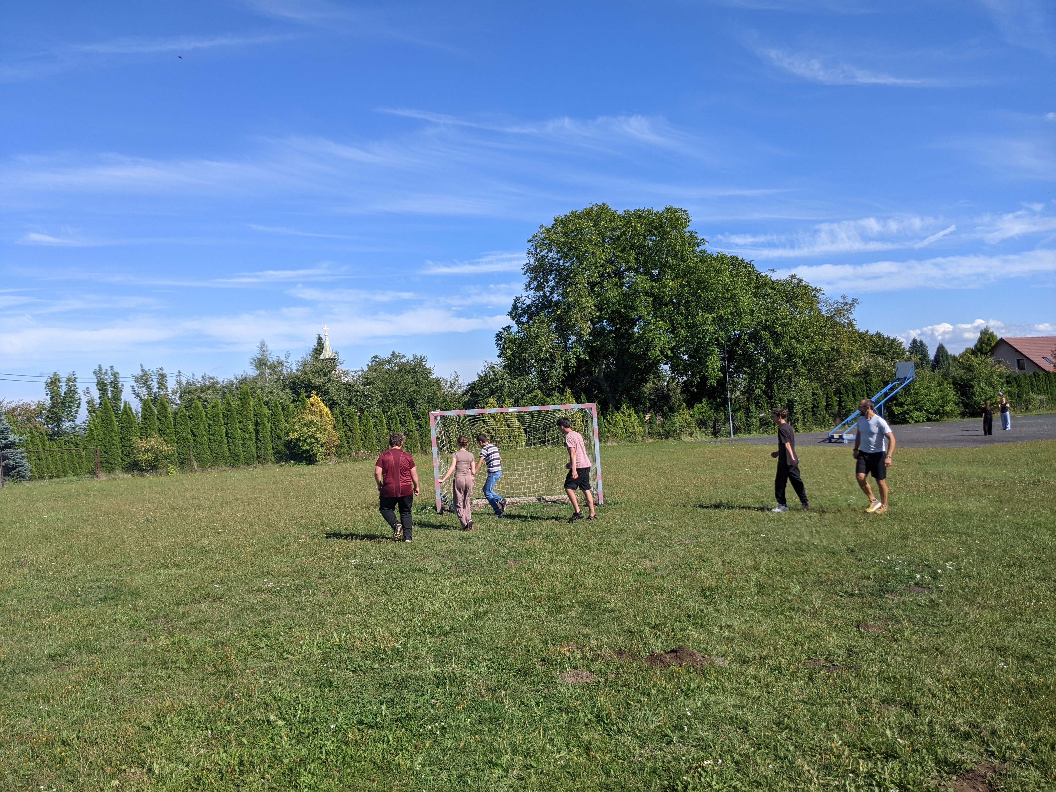 Odpolední program byl plný pohybu a zábavy. Na hřišti jsme sehráli dramatické utkání, v němž tým učitelů a žáků změřil síly proti chlapeckému týmu. Po vyrovnaném boji rozhodly poslední góly a vítězství si nakonec připsal tým s panem učitelem Juhaňákem a třídním učitelem Gažem. Nechyběly ani další sportovní aktivity – basketbal, houpačky či prolézačky.