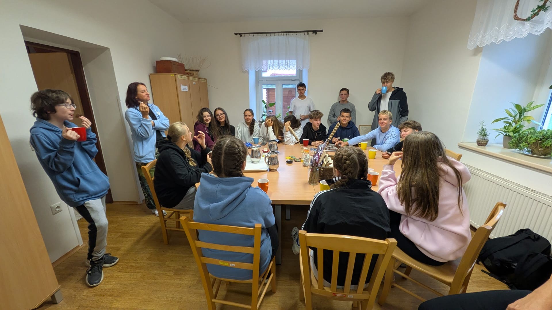 V pondělí 22. 9. 2025 se žáci 9. B vydali na svůj poslední motivační výlet. Naším cílem bylo zdolat kousek turistické trasy Via czechia (z Horních Hoštic do Bílé Vody). Na konci nás čekalo Muzeum v Bílé Vodě, které se stalo naší základnou. Po občerstvení a krátkém odpočinku jsme se vydali do Léčebny v Bílé Vodě. Zde jsme měli možnost prohlédnout si část areálu a vyslechnout si několik životních příběhů klientů léčebny. Všechny v nás zanechaly stopu, žádný z nich nás nenechal lhostejné. Měli jsme také možnost podívat se do kuchyňky a dílny pro pracovní terapii, kde nám klienti nachystali drobné občerstvení ve formě buchty a čaje.