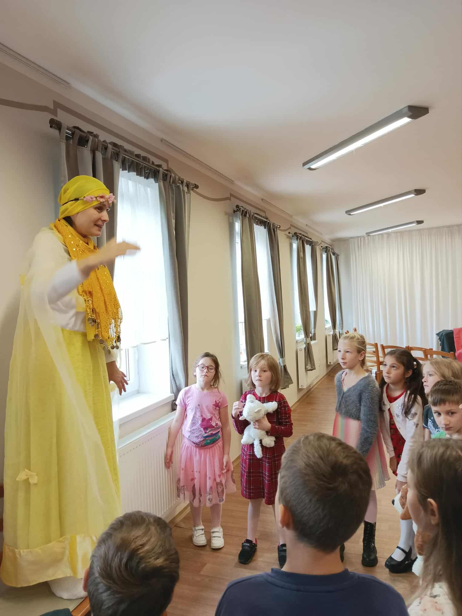 Dne 16. 10. proběhl pro žáky 1. a 2. tříd výchovně vzdělávací program „ O živé vodě“. Žáci se prostřednictvím příběhu o pejskovi a kočičce zapojili hravou formou do hledání živé vody. Cesta byla protkána zvuky spousty hudebních nástrojů, prostřednictvím děje si žáci upevňovali důležité mravní hodnoty, seznámili se s působením bytostí v přírodě a s potřebou čisté vody v našem těle i v okolí. Přestože byl program téměř 100minutový, žáci byli natolik vtaženi do příběhu, že opravdu byl jejich emocionální prožitek naplněn do plna. Celý program vedla D. Veselá v sále nad Kafkou, za což ji děkujeme, že za námi zavítala do Javorníku.