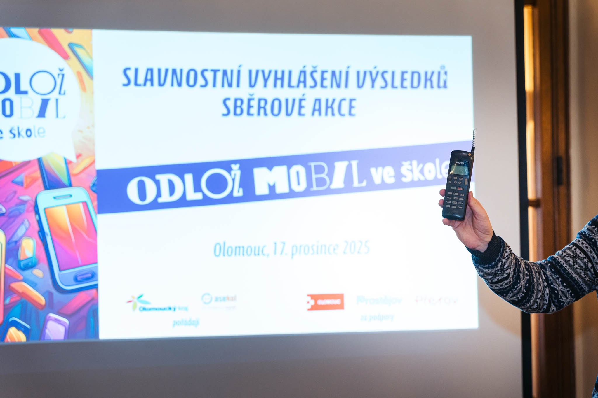 Během měsíce listopadu byla naše škola zapojena do projektu "Odlož mobil ve škole". Nakonec se našim žákům podařilo sesbírat neuvěřitelných 304 starých mobilních telefonů. Pan zástupce byl ve středu 17. 12. 2025 v Olomouci převzít uznání a cenu pro naši školu, která se stala neúspěšnější školou ve sběru za okres Jeseník.