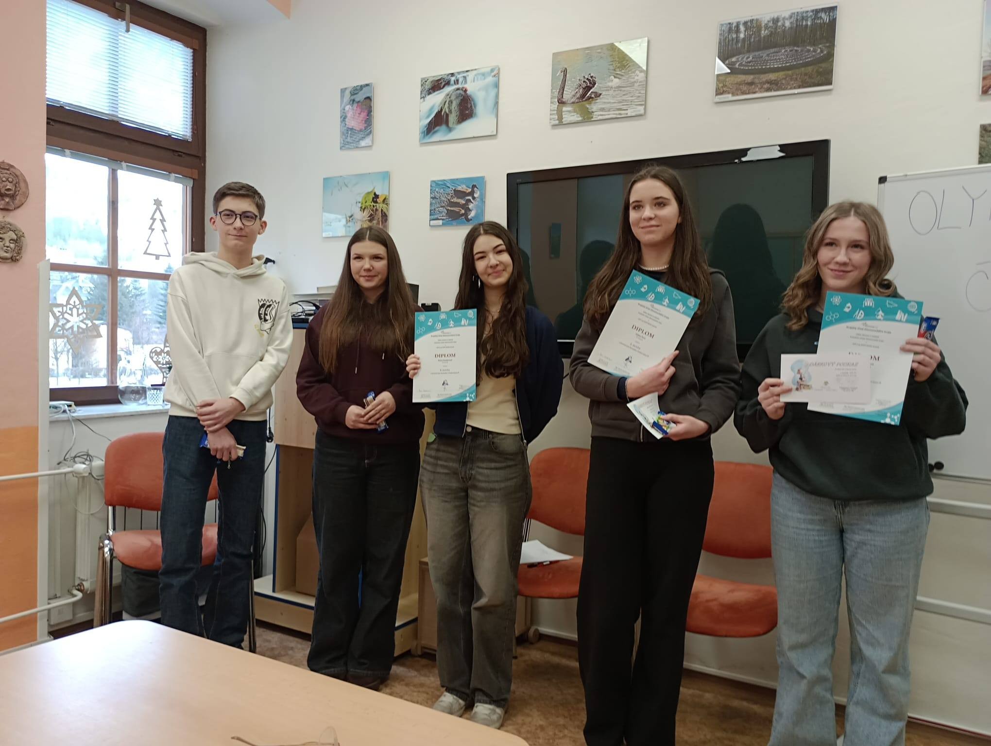 V úterý 27. ledna se v SVČ Duha Jeseník konalo okresní kolo OČJ. Naši školu reprezentovali: Matylda Líbalova (9.A) a Jonáš Širůčka (9.B). V konkurenci 22 žáků unikl Matyldě bronzový stupínek o pouhého půl bodu (!) a obsadila 4. místo. Také Jonáš se neztratil a v soutěžním poli se pohyboval v první polovině. Děkuji oběma za vzornou reprezentaci školy!
