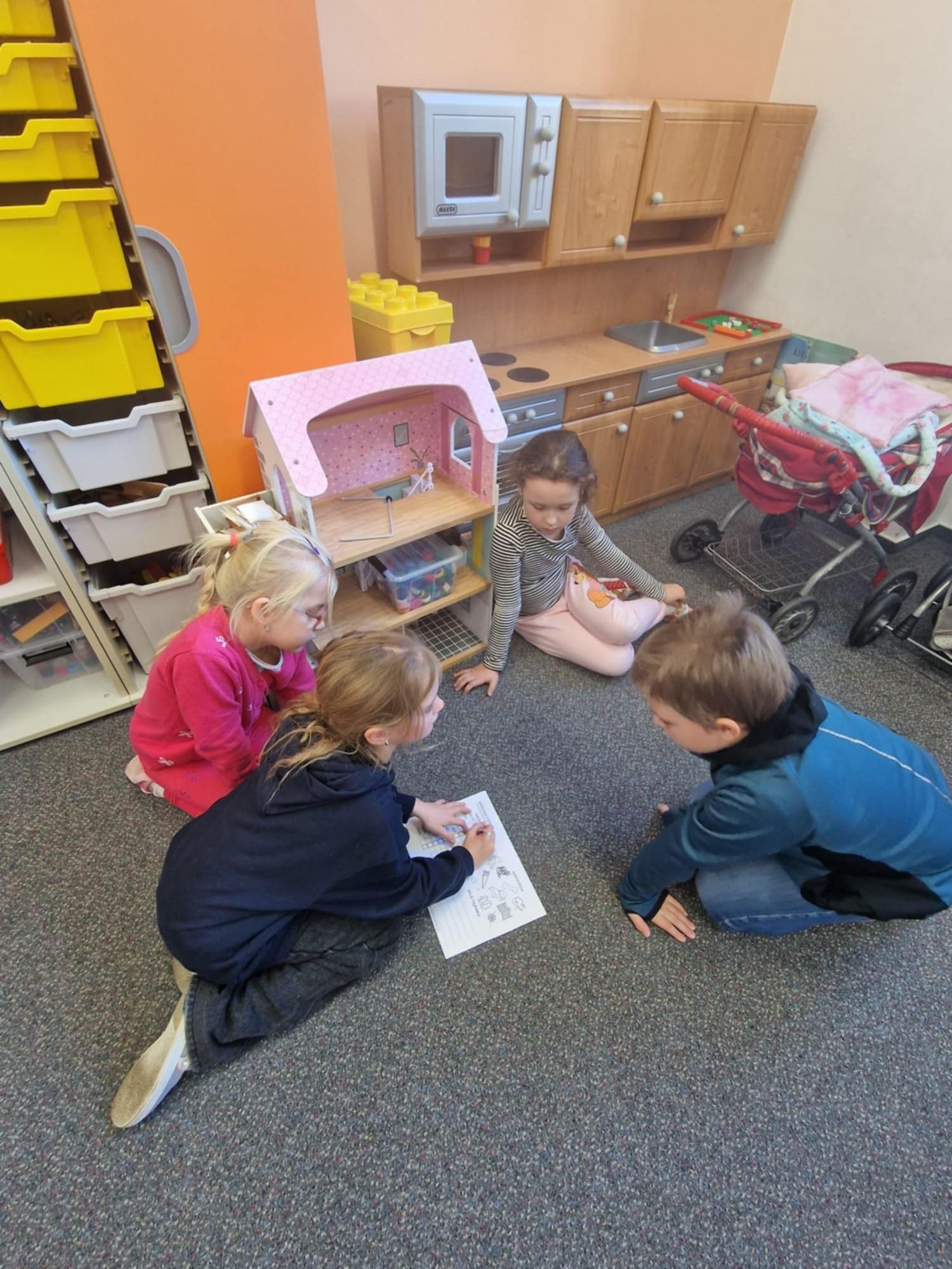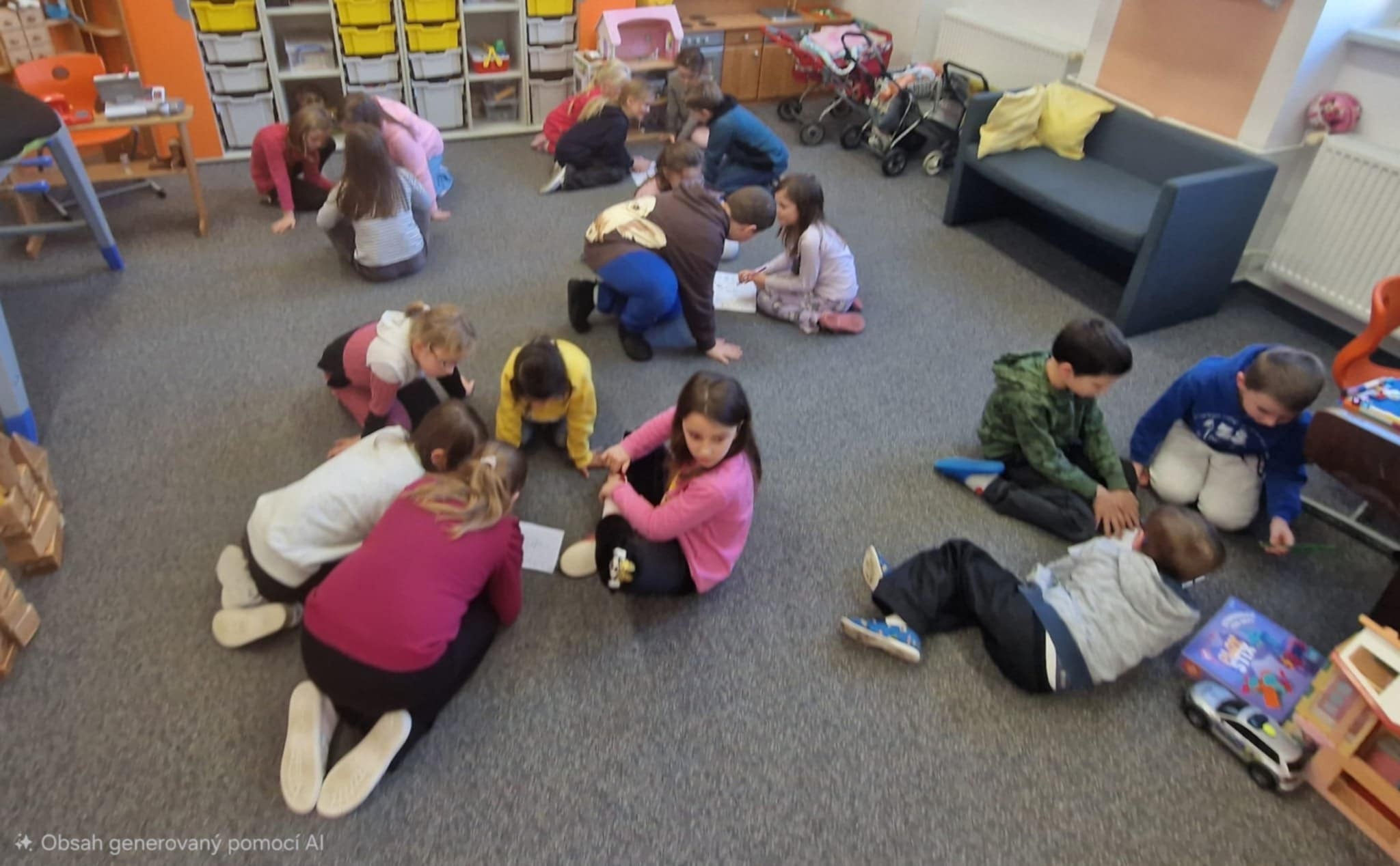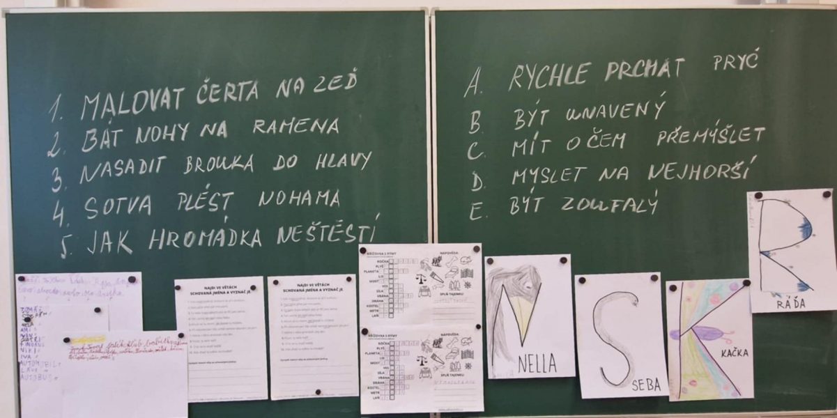Prožili jsme jedno odpoledne plné slovních hříček, hádanek, anekdot, logopedických říkadel, křížovek s rýmy i zdobení písmen. Děti se zájmem luštily, hádaly, opakovaly těžká říkadla. Pracovaly jednotlivě i ve skupinkách. Na závěr si vyzdobily první písmenko svého jména dle vlastní fantazie.