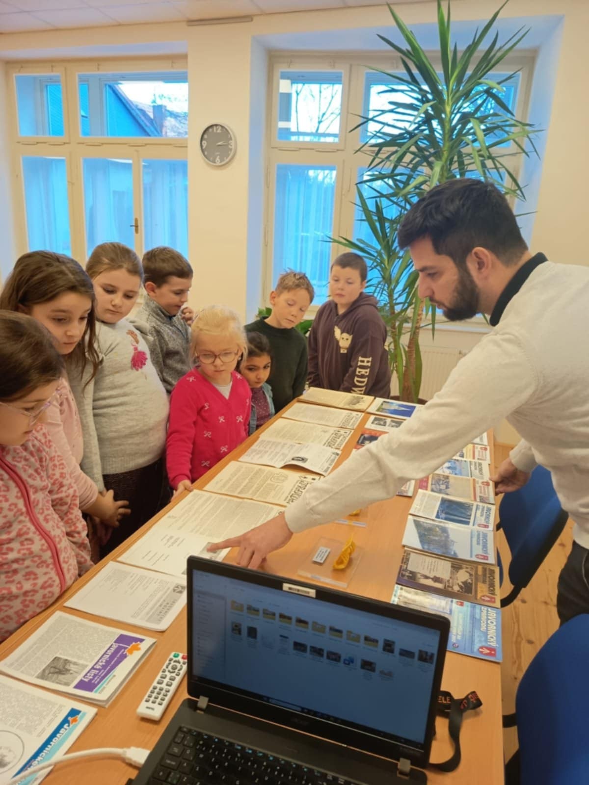 Na besedě v Infocentru s p. M. Zajoncem jsme měli možnost se seznámit s tím, jak se tvoří a vzniká Javornický zpravodaj. Nejvíce nás zaujaly ukázky dřívějších zpravodajů z minulých let.