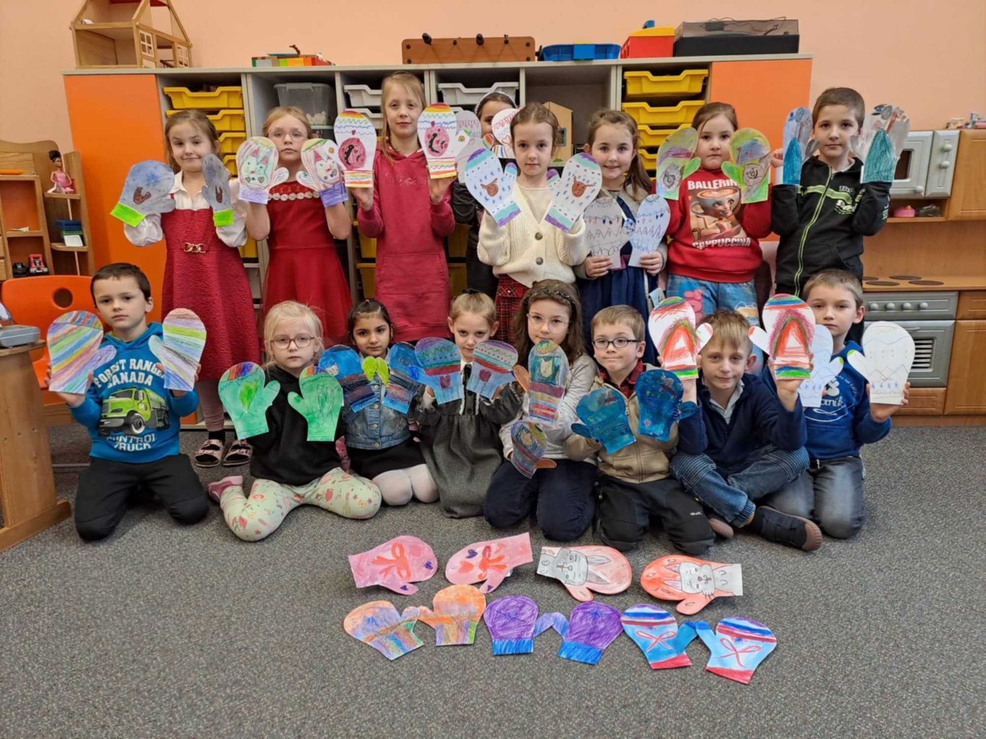 V prvním měsíci letošního roku jsme vybarvili spoustu omalovánek se zimní tématikou, kreslili zasněženou krajinu a zimní sporty. Vyrobili jsme si papírové rukavice, vystřihovali sněhuláky a sněhové vločky. Starší děti namalovaly zimní město.