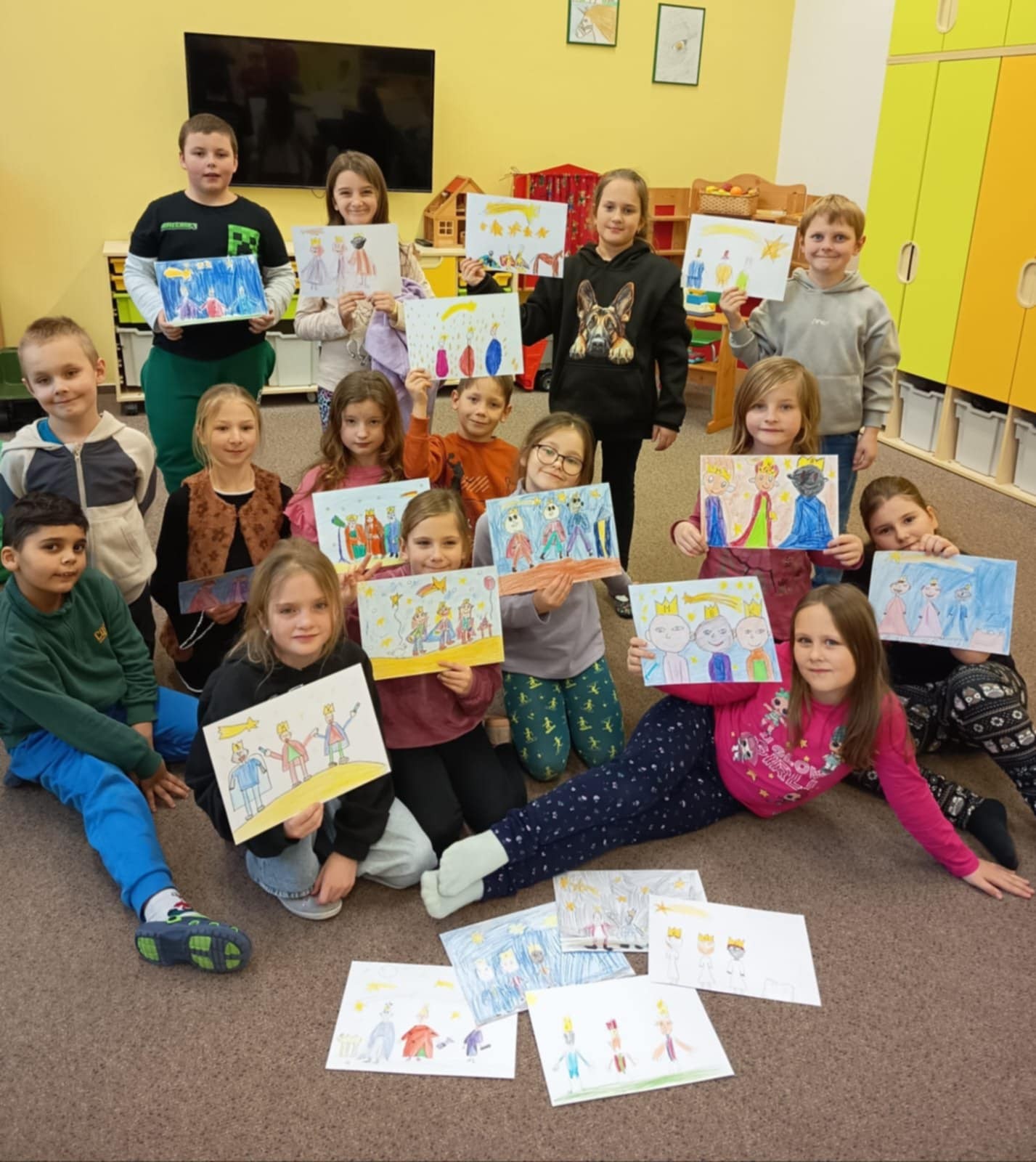 6. ledna jsme oslavili svátek Tří králů a přiblížili si zvyky, tradice, přísloví a pořekadla. Nakreslili jsme obrázky Kašpara, Melichara a Baltazara a zazpívali si píseň My tři králové. Vyrobili jsme korunky. Zapojili jsme se do 19. ročníku výtvarné soutěže Charity Jeseník na téma „Tři králové na hvězdárně“ aneb putování po hvězdách. Děti malovaly s radostí a nadšením. Vytvořily milé obrázky plné dětské fantazie. Dílka jsme odevzdali v Domově pokojného stáří sv. Františka v Javorníku. Nyní se těšíme na vyhlášení výsledků této krásné výtvarné soutěže.