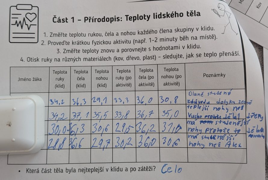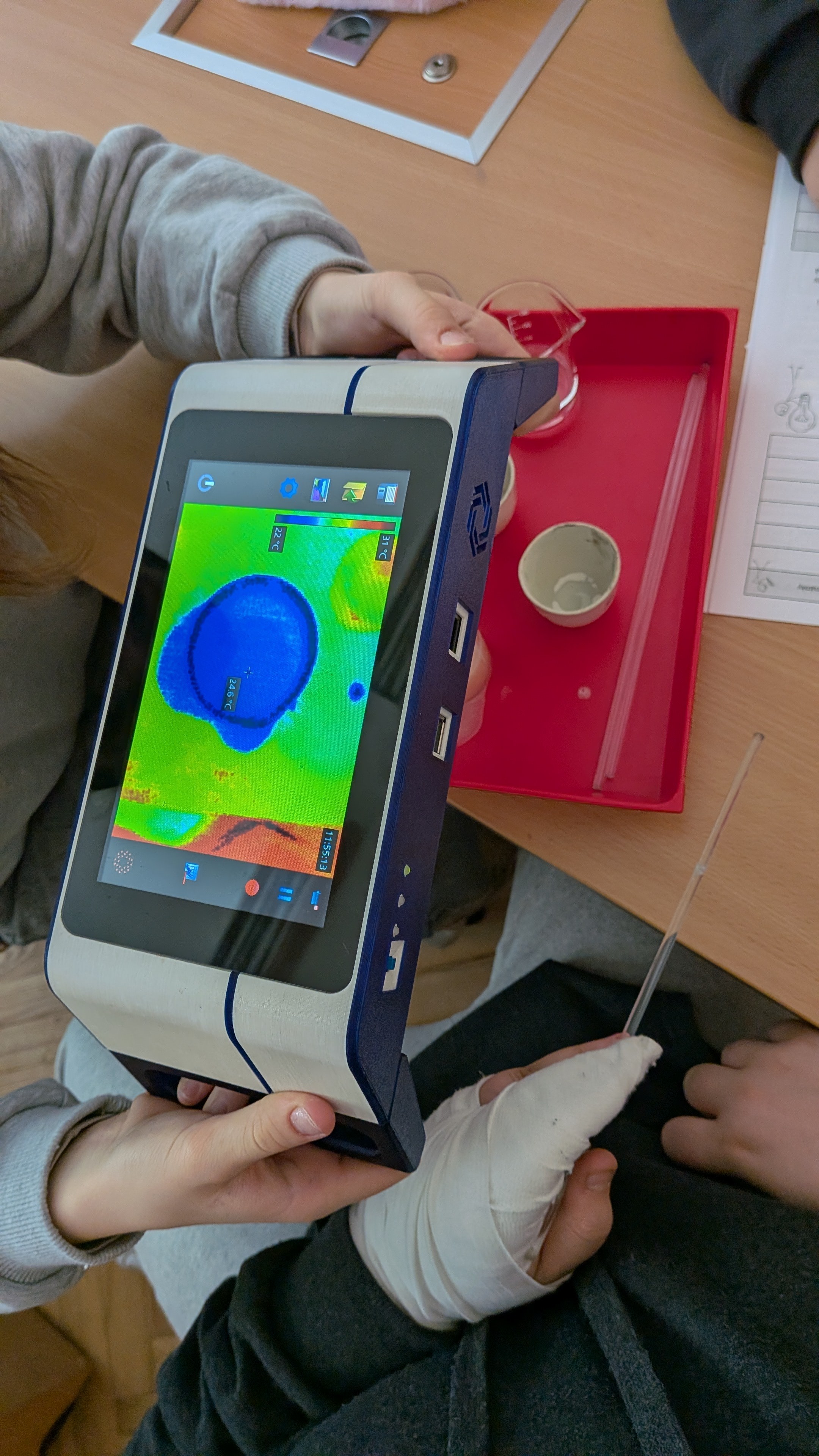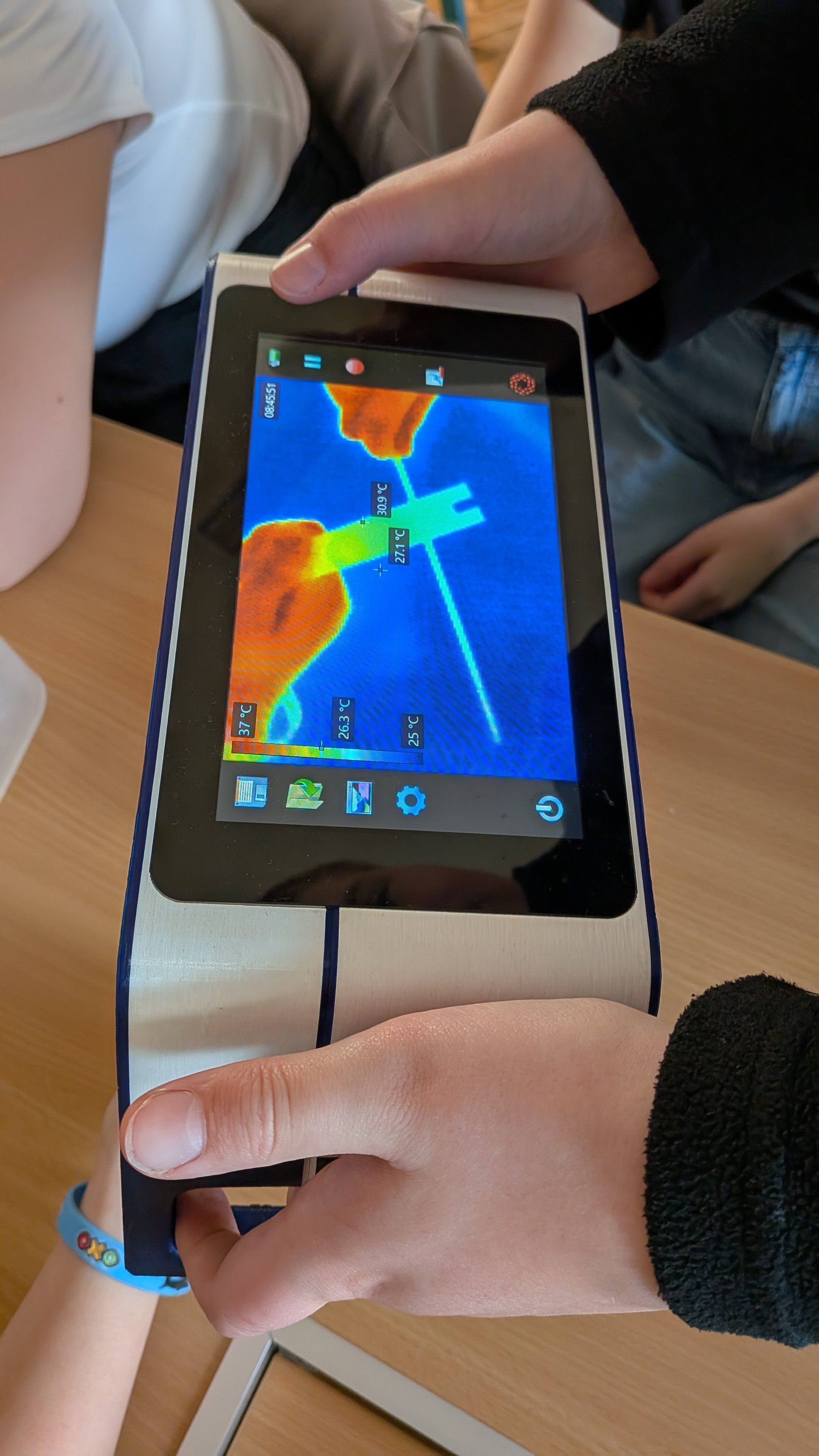 Celý předvánoční týden se na 2. stupni nesl v rámci projektových dnů. Všichni žáci ze 6. až 9. tříd měli možnost seznámit se s termokamerami a vyzkoušet si jejich využití v přírodovědném vzdělávání. V rámci přírodopisu vyzkoušeli měření lidského těla v klidu a po aktivitě, v rámci fyziky zkoumali vedení tepla různými materiály, v chemii se podívali na zoubek chemickým reakcím, které dělili na exotermické a endotermické. Posledním úkolem bylo zkoumání tepelných mostů v učebně. Žáci byli překvapeni, co vše termokamery zvládnou a kde všude je můžeme v běžném životě využít.