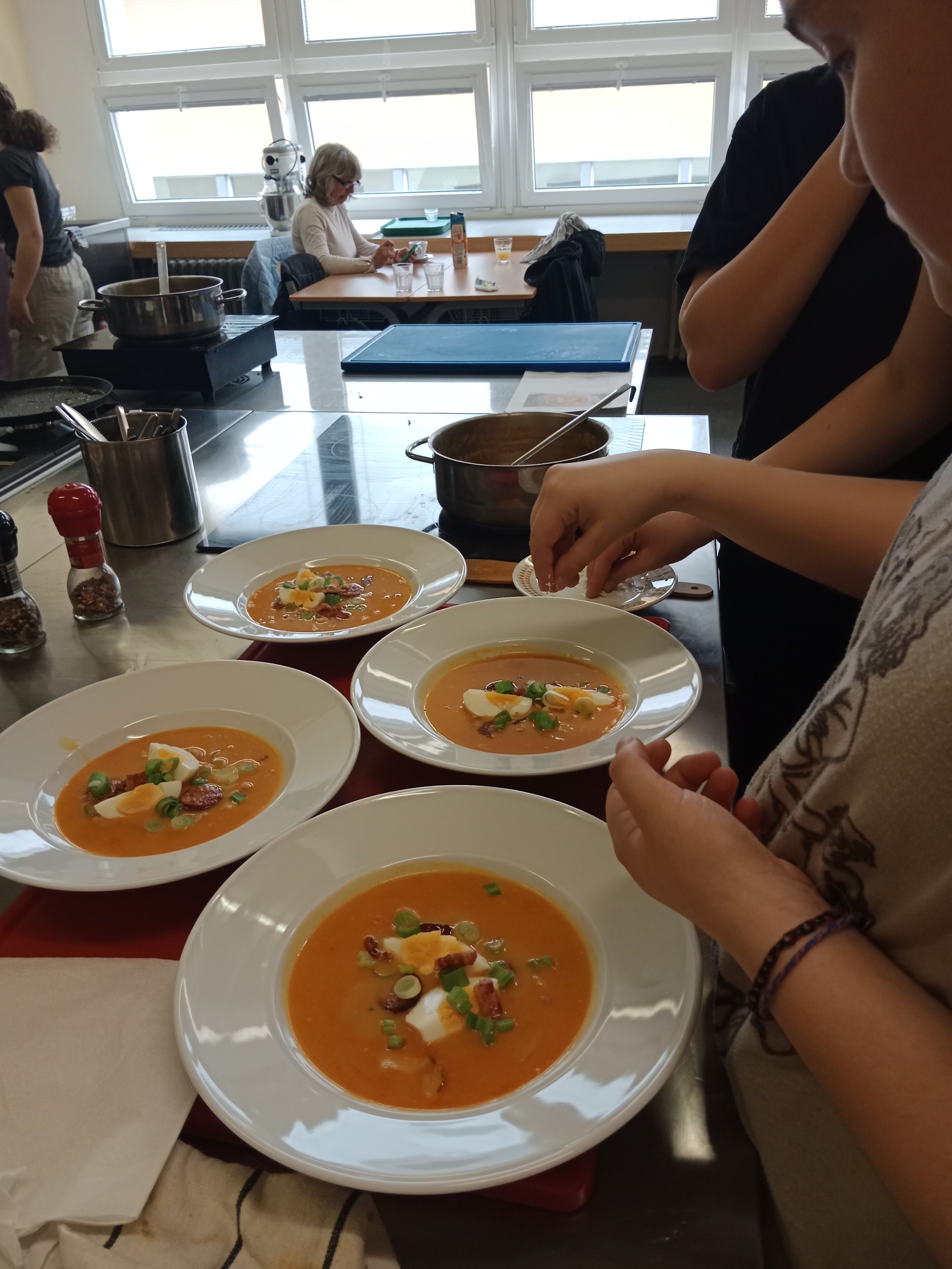 Polévka byla následně hodnocená podle chuti, vzhledu a technické zdatnosti. Našim mladým "kuchařkám" Alžbětě Hanzlové, Monice Račákové a Matyldě Líbalové se moc povedla.